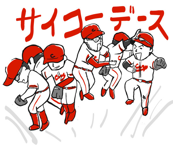 ヒップタッチのイラスト、菊池のジャンプ力がハンパないですね!!