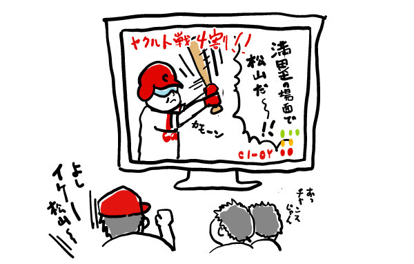 誠也のホームランで賑わっていたファンは松山のホームランを喜ぶタイミングを見失い